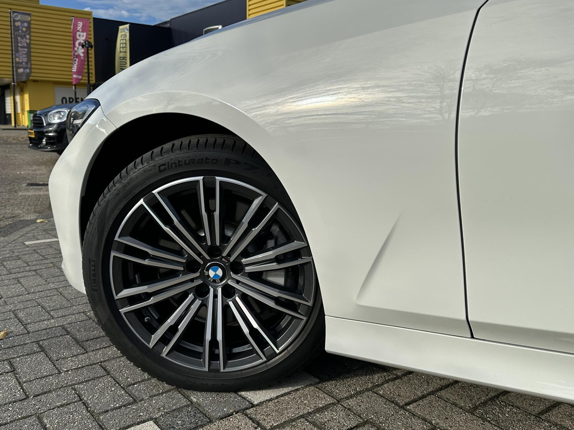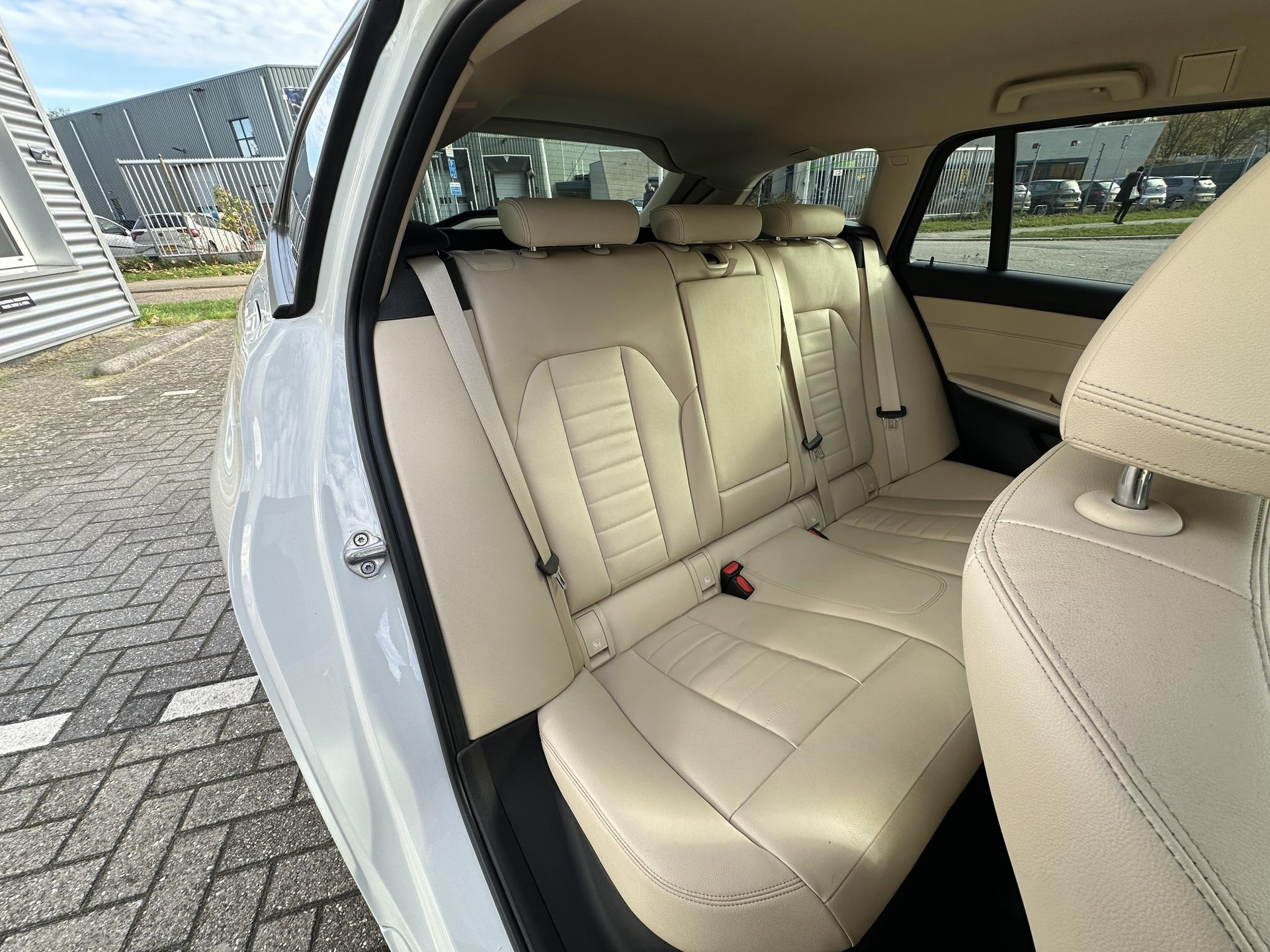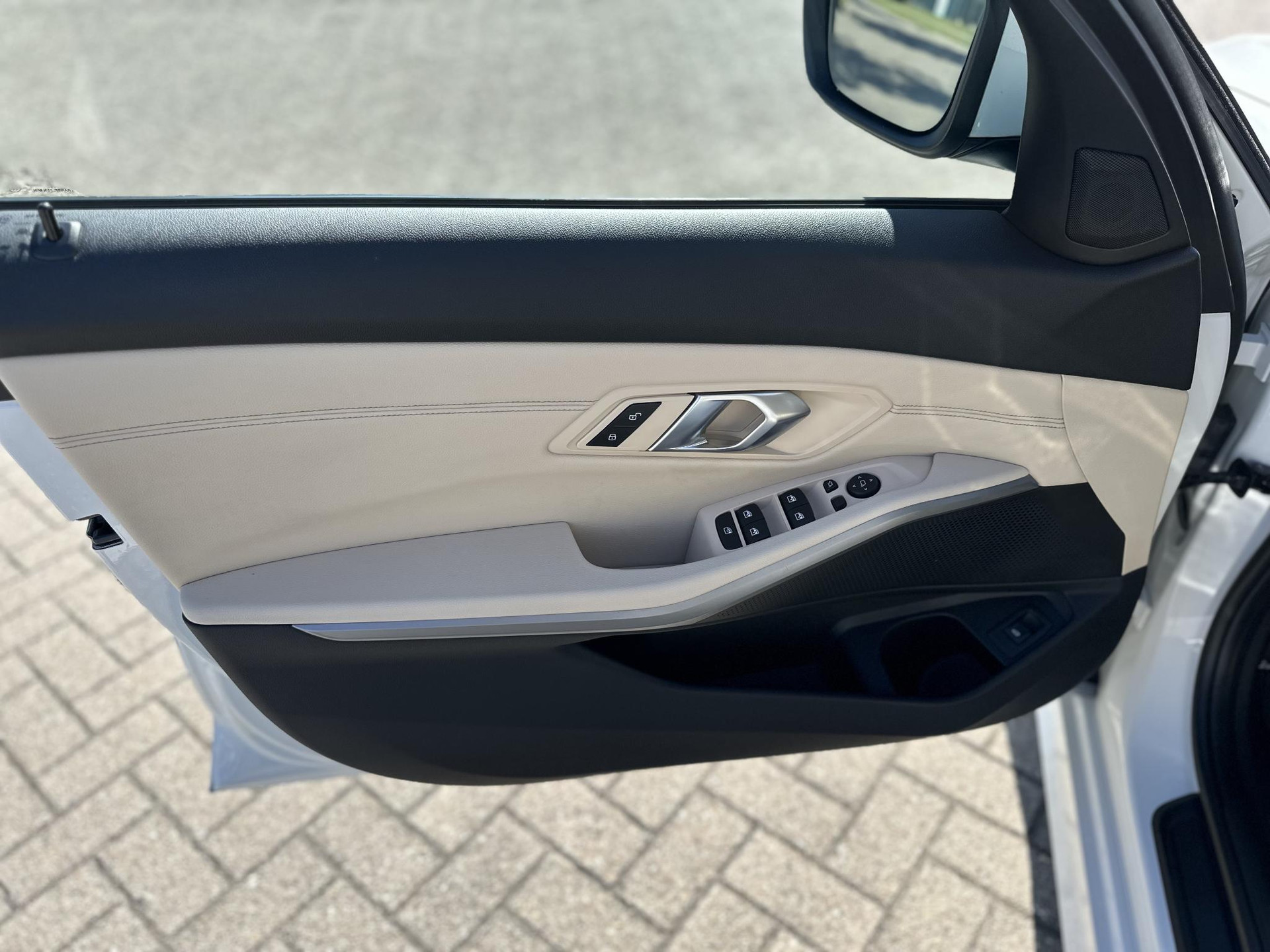 BMW 330I touring in Alpinweiß, Automaat met 258 pk en prachtig beige lederen interieur en 19 inch M-sportwielen.