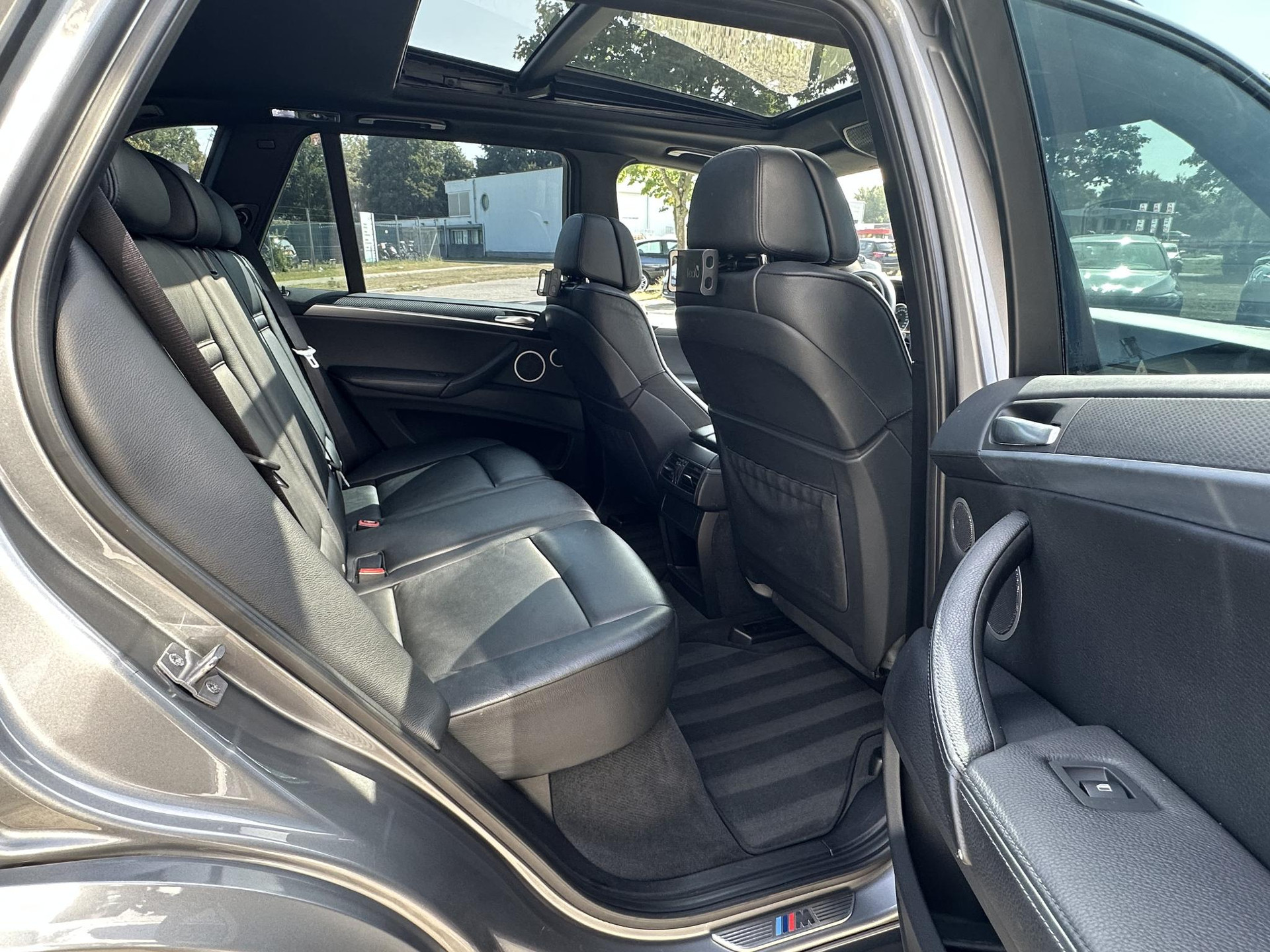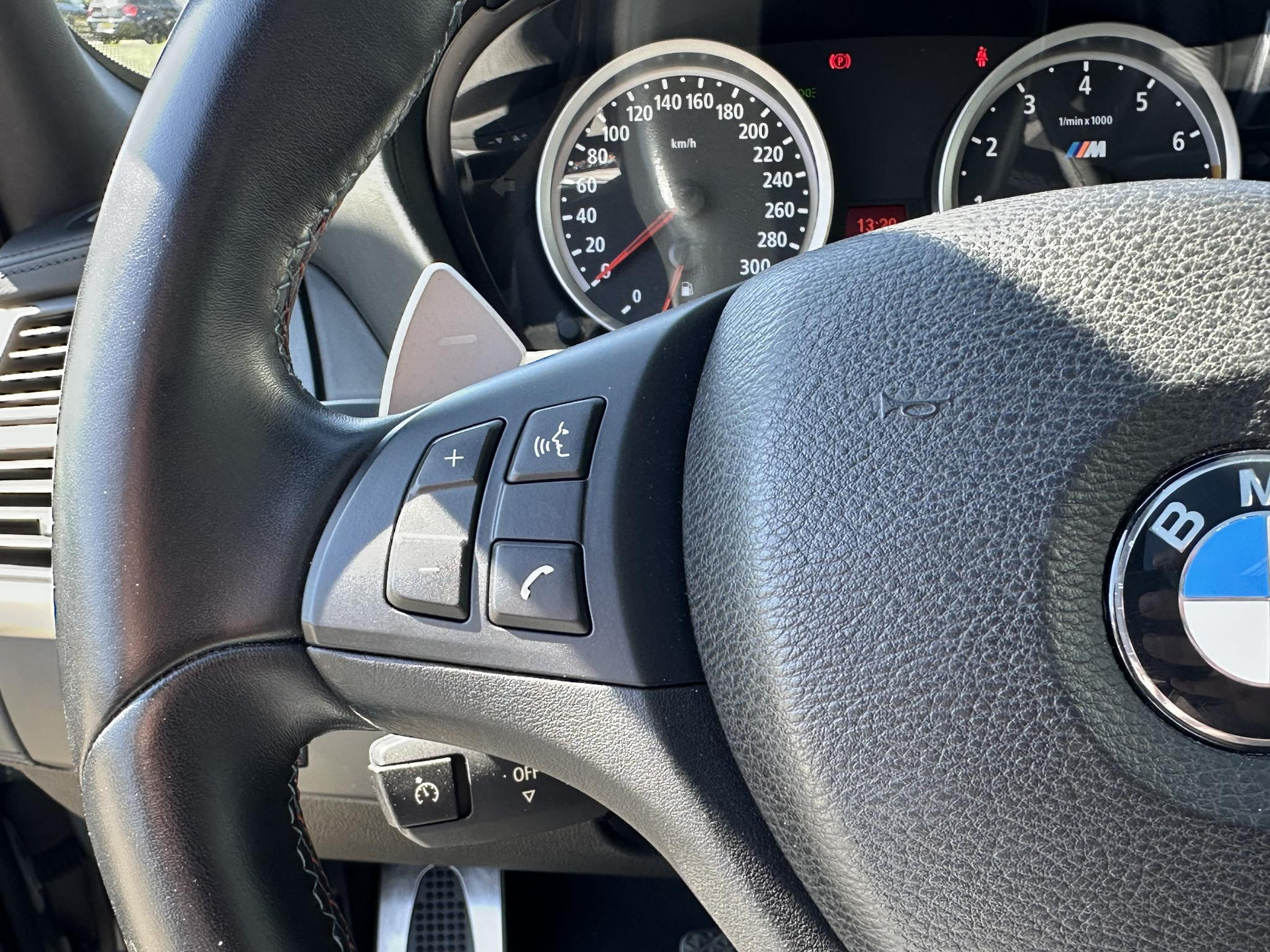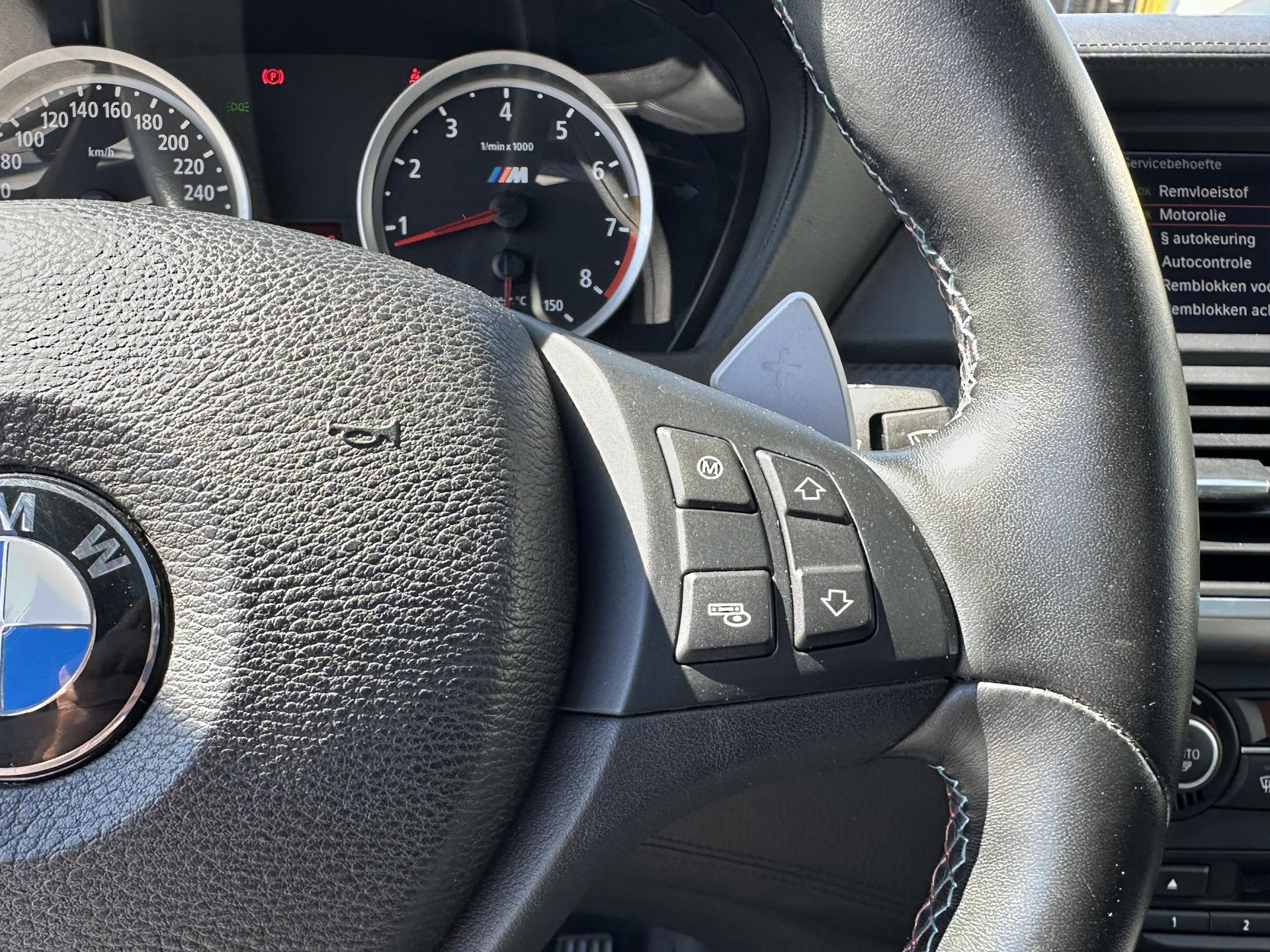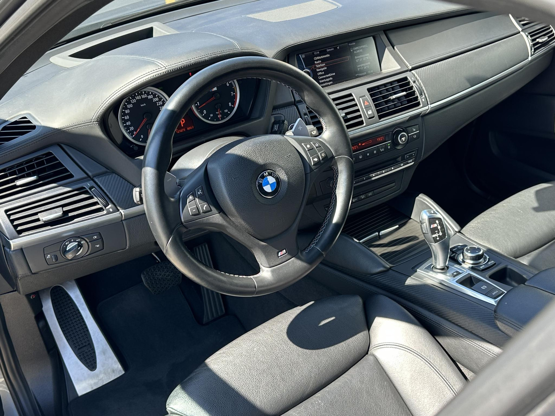 Bij het inparkeren laat de achteruitrijcamera precies zien hoeveel meter... decimeter... centimeter ruimte er nog is! U kunt tijdens de rit uw ogen steeds op de weg houden, want het audio-installatiesysteem en het navigatiesysteem met harde schijf kunt u bedienen vanaf het stuur. De electronic climate control zorgt voor een prettige binnentemperatuur. Zuinig zoeven, dat kan deze auto dankzij de aanwezige cruise control. Klinkt dit bekend? Met een volle boodschappentas bij uw auto aankomen en dan onderaan op zoek moeten naar de sleutel. Hoeft niet bij deze BMW X5M dankzij de keyless entry. U bent in deze BMW ook voorzien van sportstuur met schakelpaddles, automatisch dimmende binnenspiegel, centrale deurvergrendeling met afstandsbediening en boordcomputer.