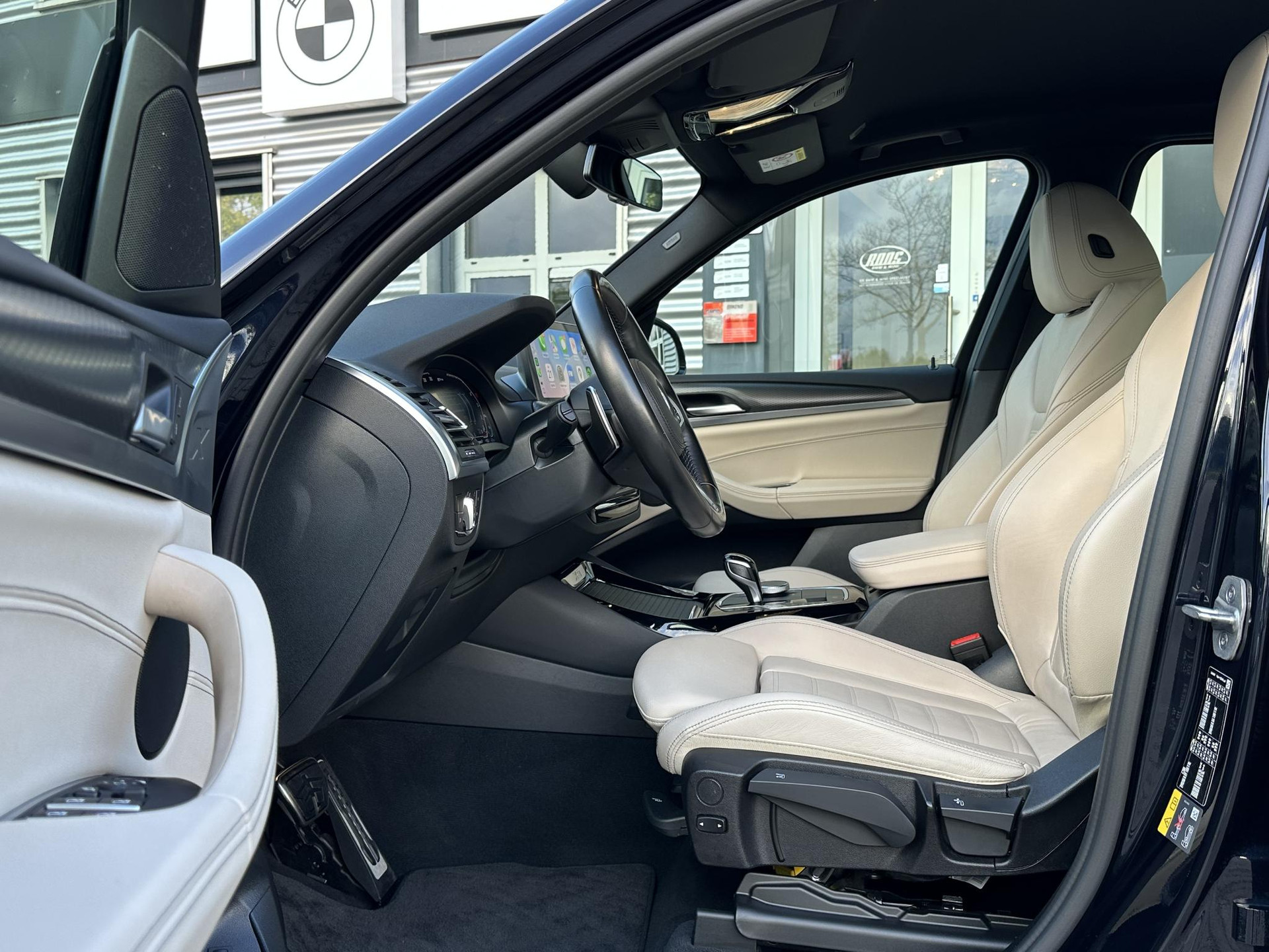 Roos BMW & MINI specialist bied u aan deze prachtige BMW X3 30e in Carbonzwart metallic, met prachtig Oyster lederen interieur en zwarte hemel. Hij komt uit 04-2023 en heeft 184pk gecombineerd met een 55kw elektrisch vermogen. Al het onderhoud is keurig uitgevoerd en digitaal geregistreerd.
